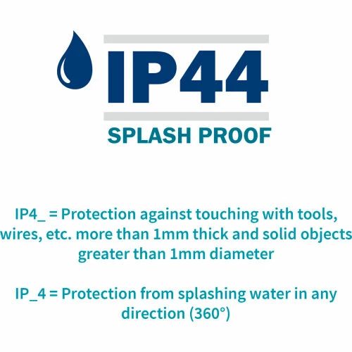 - Spring loaded flip cover. Protects against splashing water from any direction.