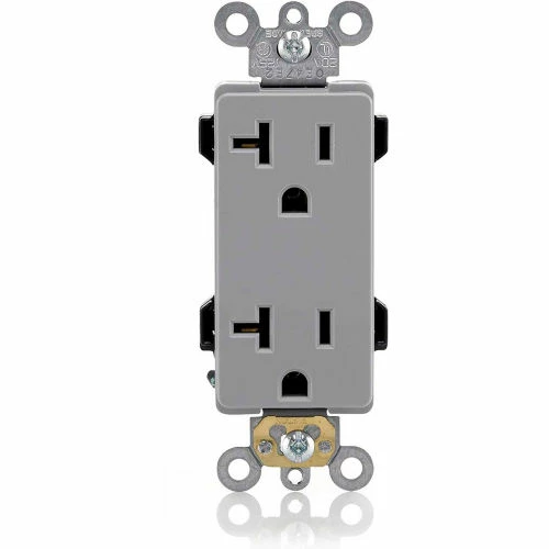 20 Amp, 125 Volt, NEMA 5-20R, 2P, 3W, Decora Plus Duplex Receptacle, Straight Blade, Commercial Grade, Self Grounding, Back and Side Wired, Steel Strap, Gray