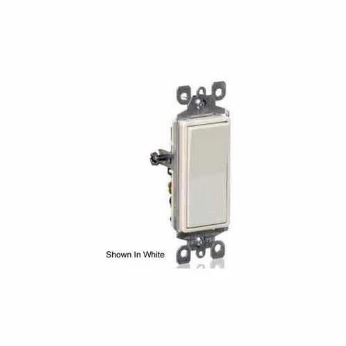 The Leviton Decora single-pole switch, 15 Amp 120/277 Volt in light almond is an AC quiet residential grade single-pole grounding switch constructed of high-impact resistant thermoplastic. Made with side wire and Quickwire push-in terminals for easy installation. Side wire accepts #12 and #14 AWG. Quickwire accepts #14AWG.