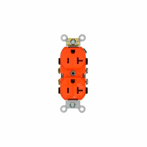 Leviton CR20-O 20A, 125V, Duplex Receptacle, Self Grounding, Orange – Pkg Qty 10