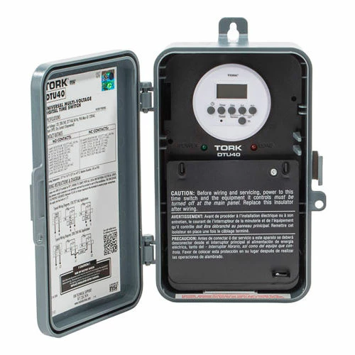 NSI TORK® DTU40 7 Day Digital Time Switch, 40A, 120-277V, DPDT, In/Out Polycarbonate Enclosure